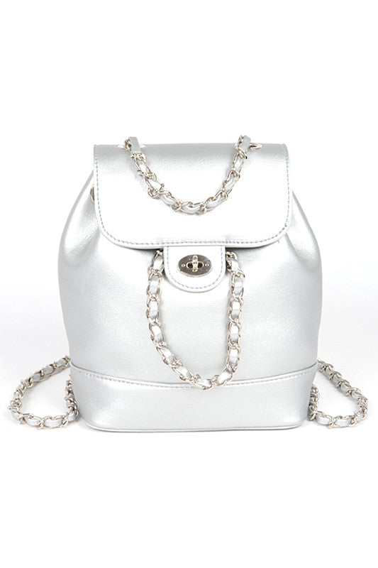 Chic Faux Leather Backpack with Chain Detail